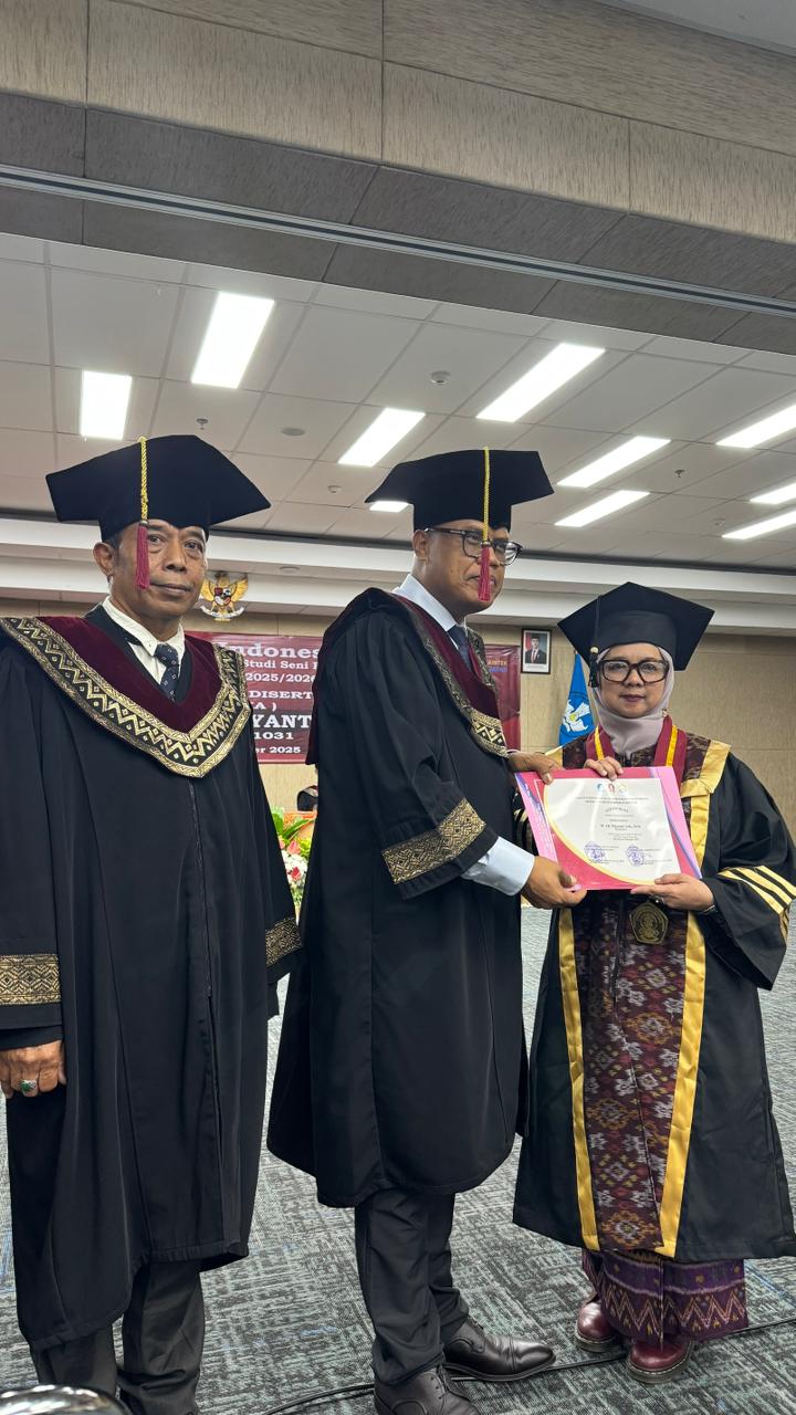 "FSRD IKJ dengan bangga mengucapkan selamat atas keberhasilan Sidang Terbuka Disertasi Dr. Lily Wiyanti, M.Sn. yang mengangkat judul 'Estetika Reproduksi Tradisi Toraja Pada Tator Cafe Dharmawangsa Square di Jakarta'. Sidang ini dilaksanakan pada Rabu, 24 Desember 2025, bertempat di ISI Denpasar,