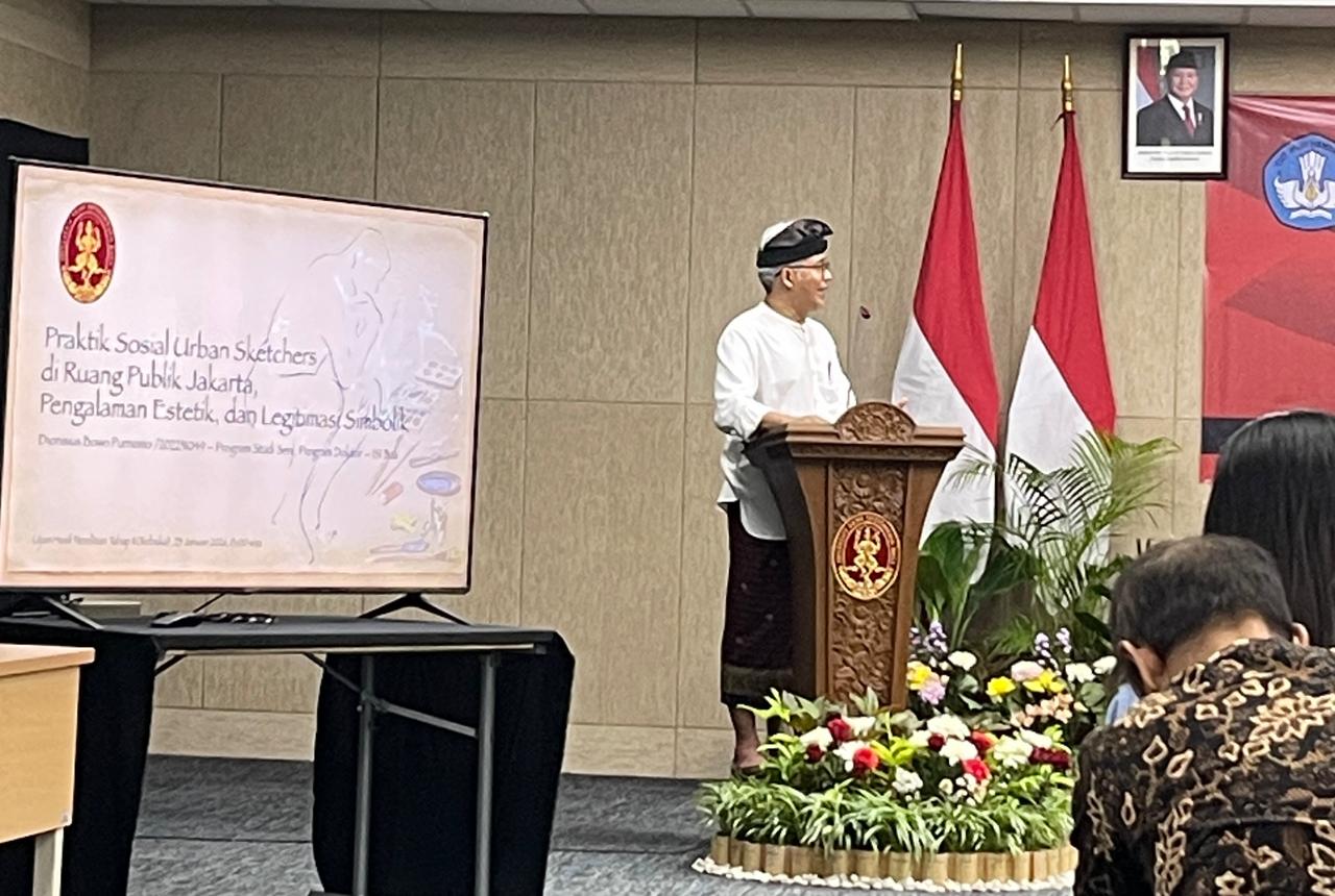 Sidang Terbuka Disertasi Dr. Dionisius Bowo Purnomo, M.Sn. (dosen Prodi Desain Komunikasi Visual FSRD IKJ) dengan judul Disertasi "Praktik Sosial Urban Skecthers