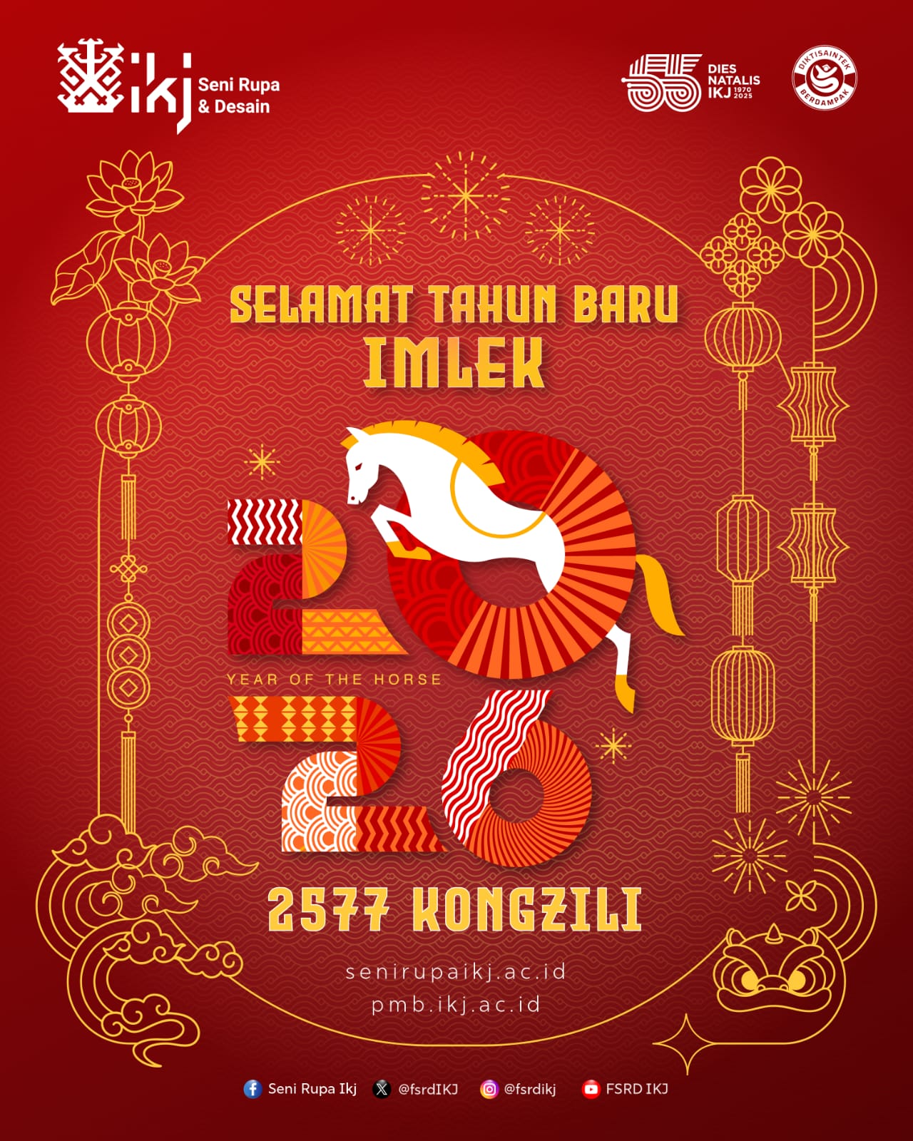 Sivitas akademika Fakultas Seni Rupa dan Desain IKJ mengucapkan Selamat Tahun Baru Imlek 2026/2577 Kongzili Semoga di tahun ini segala impian dan harapan