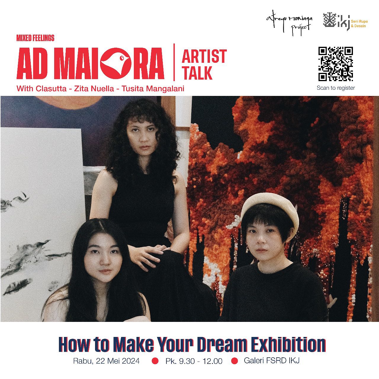 Halo teman-teman dari Institut Kesenian Jakarta! Buat kamu yang penasaran gimana membuat pameranmu sendiri, yuk ngobrol-ngobrol bareng di Artist Talk kali ini dengan angkatan terbaru Atreyu Moniaga Project: Mixed Feelings “Ad Maiora”.