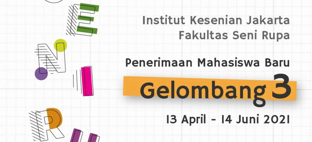 Penerimaan Mahasiswa Baru Fakultas Seni Rupa Institut Kesenian Jakarta! πŸš€πŸš€πŸš€πŸš€πŸš€ GELOMBANG III πŸ—“ 13 April - 14 Juni 2021 Pendaftaran secara daring #darirumahsaja πŸ–±Klik tautan pmb.ikj.ac.id Informasi : Silahkan kunjungi kami di senirupaikj.ac.id atau kontak informasi β˜ΊοΈπŸ™ πŸ“² +62 821 […]