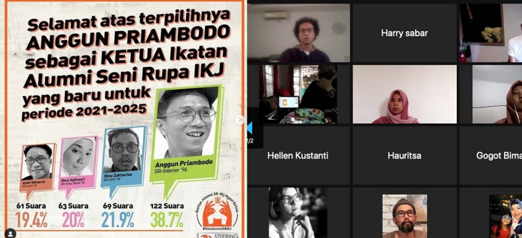Steering Commite Ikatan Alumni Seni Rupa IKJ telah melangsungkan Pengukuhan Ketua Alumni FSR IKJ terpilih 2021-2025, Anggun Priambodo secara daring. Pengukukan tersebut merupakan penetapandari terpilihnya Anggun Priambodo sebagai Ketua Ikatan Alumni Seni Rupa IKJ untuk periode 2021-2025 pada 26 Juni […]