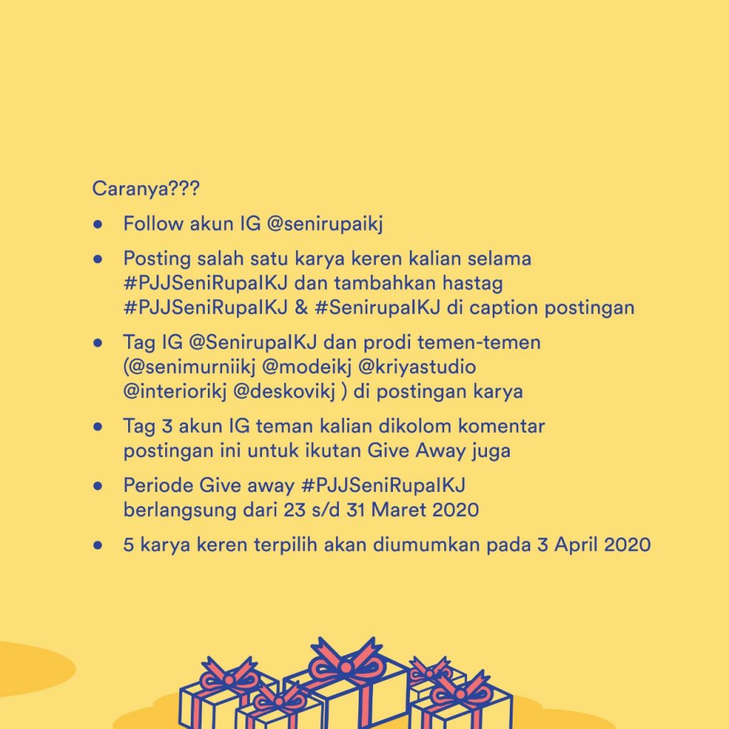 5. Periode Give away #PJJSeniRupaIKJ berlangsung dari 23 s/d 31 Maret 2020