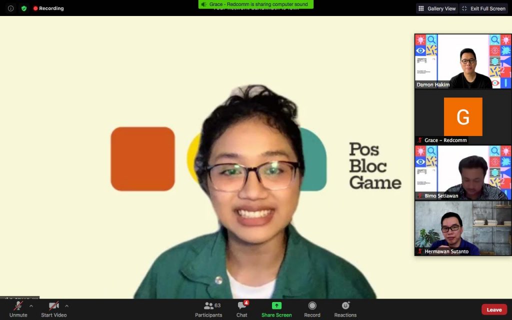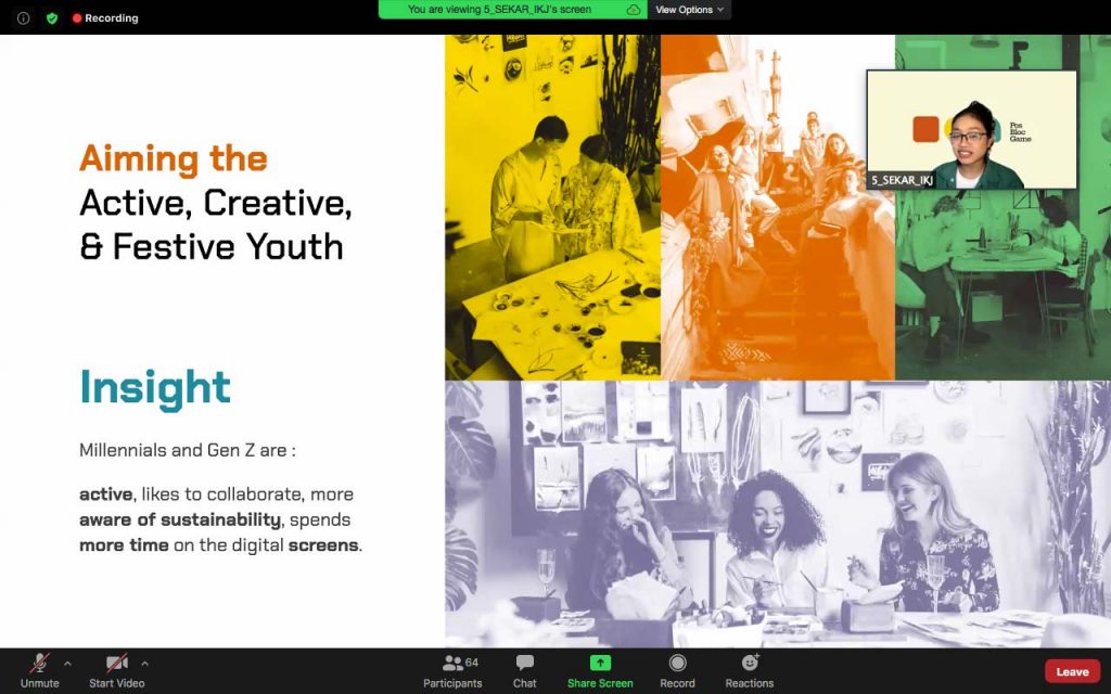 Pada babak Grand Final, Elisabet Sekar yang masuk dalam 5 besar dan para peserta lainnya melakukan LIVE Presentation yang disaksikan langsung oleh pelaksana, para juri dan tim pendukung dari masing-masing universitas atau institusi secara daring. Sekar pun melakukan presentasi tentang konsep karyanya yang mengangkat tema Pos Bloc Game.